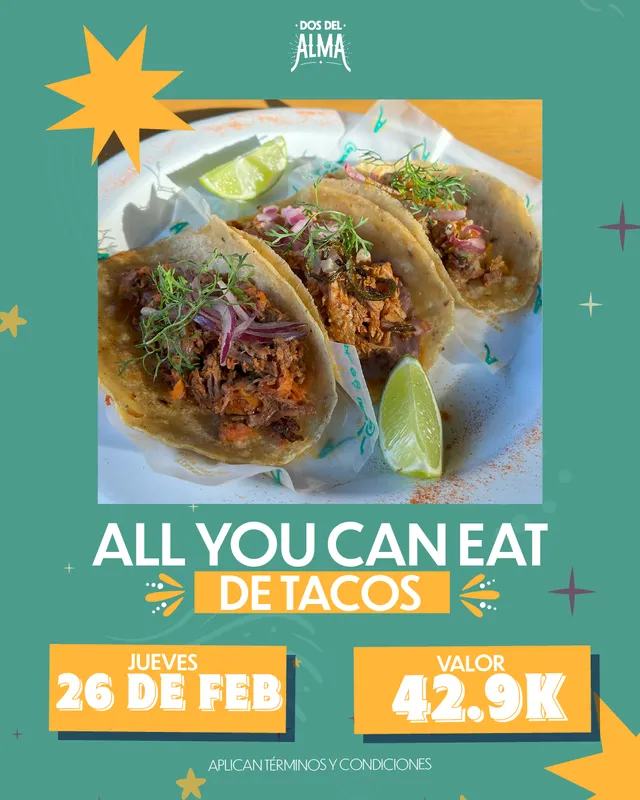 ¿Qué?: All you can eat de tacos (todo lo que puedas comer de tacos) en dos horas, el día 26 de febrero del 2026.