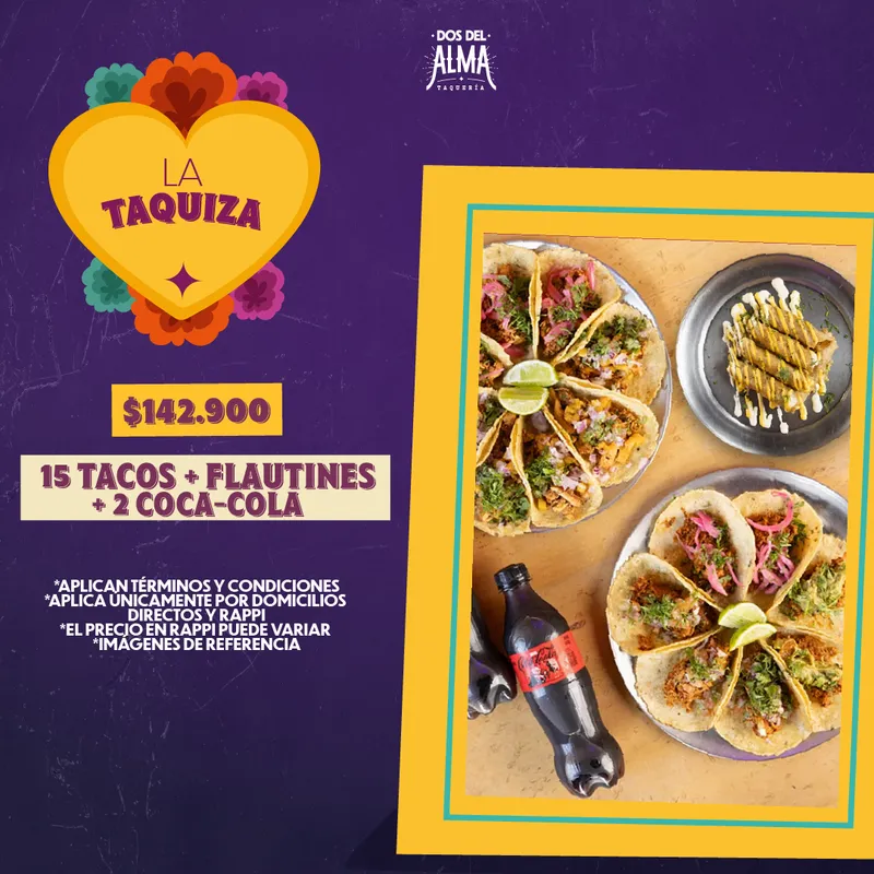 ¿QUÉ?: 15 TACOS + FLAUTINES + 2 COCA-COLA