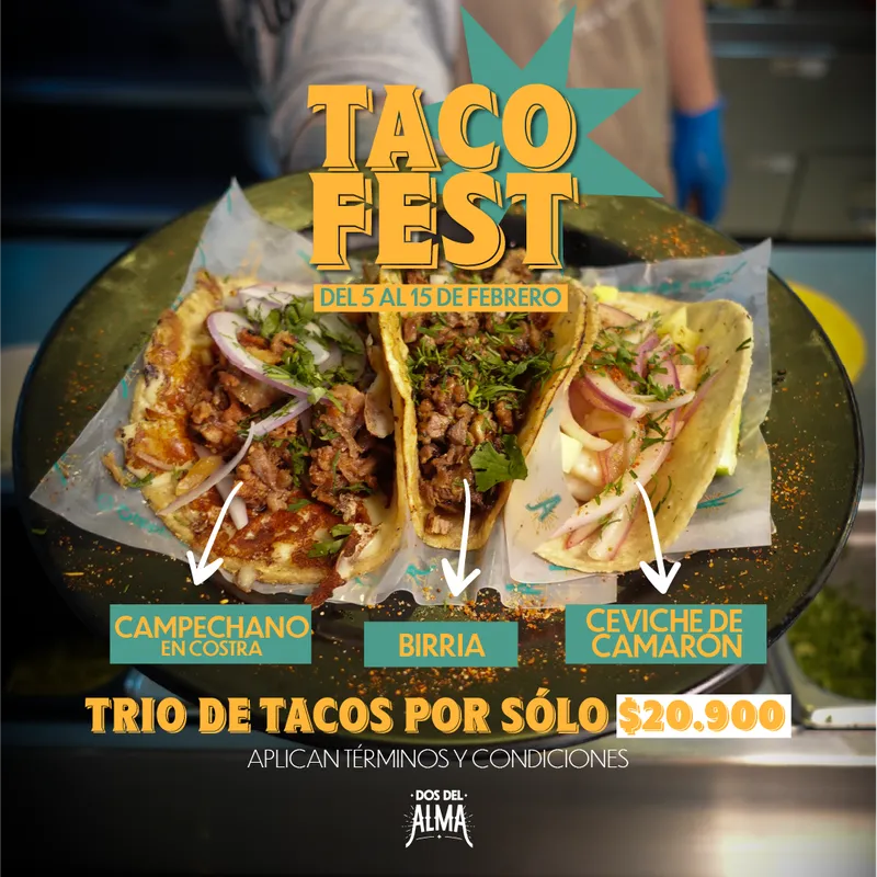 ¿Qué?: En el taco Fest podrás disfrutar de 3 sabrosos tacos por $20.900 cop.