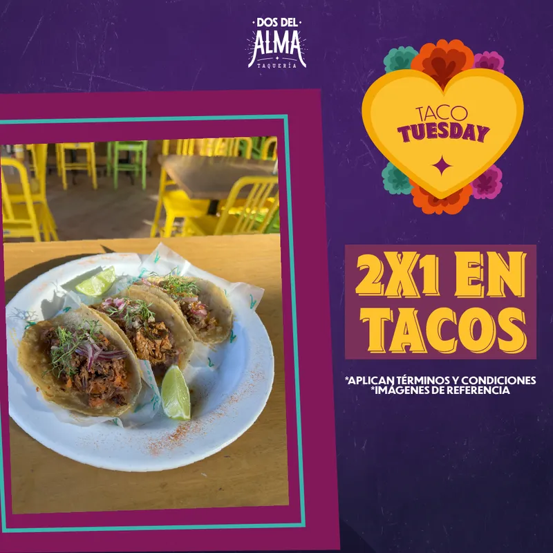 ¿QUÉ?: 2X1 en tacos. Si ordenas 3 tacos, recibe 3 tacos, totalmente gratis.